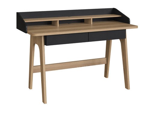 - Móvel possui ampla superfície para trabalho e estudos, conta com passagem de fiação e duas gavetas para guardar acessórios, tornando o espaço mais funcional e organizado;